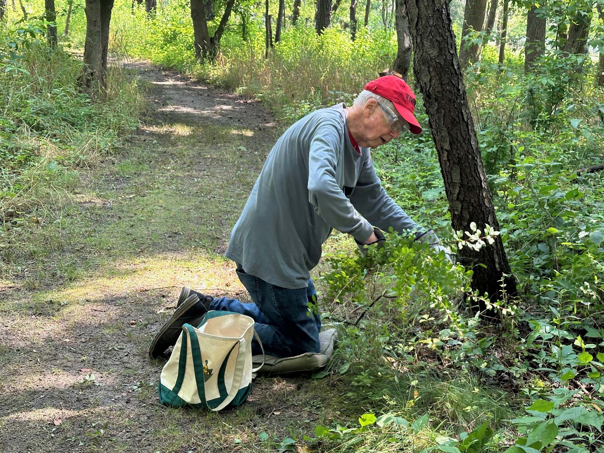 Regular maintenance along the trails includes the control of poison ivy, the trimming of multiflora rose bushes, weedwhacking underfoot grass, and lopping off intrusive branches. Sometimes there is a trail or bridge maintenance activity that requires the combined effort of several members of the group. When needed maintenance is beyond what volunteer residents can handle, it is reported to the maintenance department — for example for the removal of heavy limbs or trees or for the repair of a bridge.