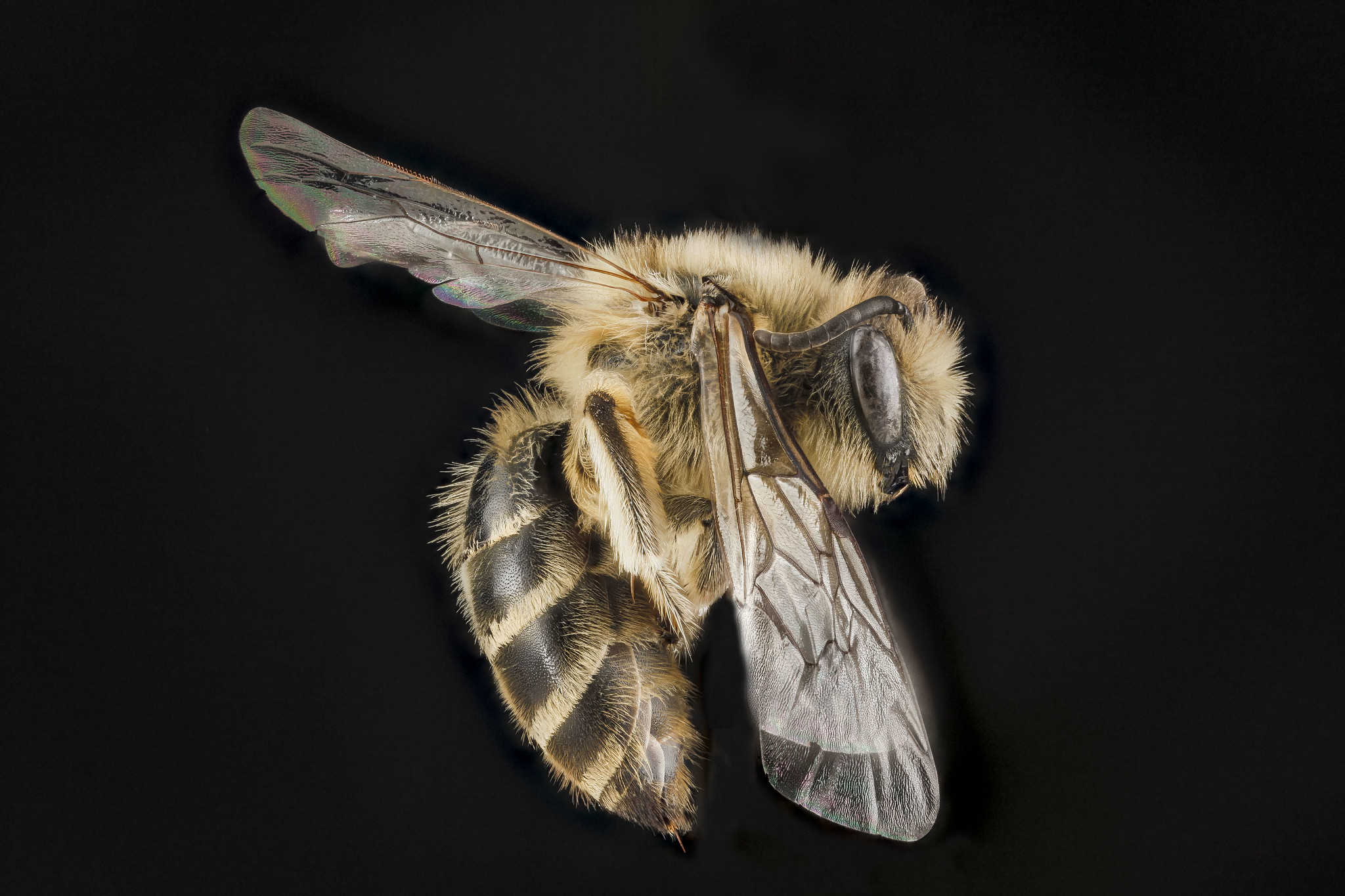 My bee was an unequal cellophane bee (Colletes inaequalis), one of a large genus of bees known as plasterer bees. Here in the Northeast, the unequal cellophane bee is an early harbinger of spring. It is the first of its genus to appear and has a special place in our ecosystem. It is a pollinator of our earliest blooming native trees, including red maples, willows, and apple trees. The bees are called plasterer bees because they build cells in underground nests that are lined with a polyester-like substance that makes their nests waterproof. They use their tongues to paint the interior of their tunnels with a glandular secretion mixed with saliva that produces this polyester-like material. Thus, their developing larvae are nurtured inside a natural plastic bag that is strong, mold-resistant and waterproof. Last year’s larvae develop into pupae through the summer and overwinter as adults in the underground nests. Emerging in the spring, they feed on nectar and pollen to encourage successful reproduction. The female deposits eggs in nest cells that she stores with pollen and nectar for the emerging larvae, and at this point the adult life cycle is complete. Look for cellophane bee nests in areas that warm up early in the spring and where there is little vegetation. They are frequently mistaken for ant hills and during mating you will see lots of males flying low around the nests.