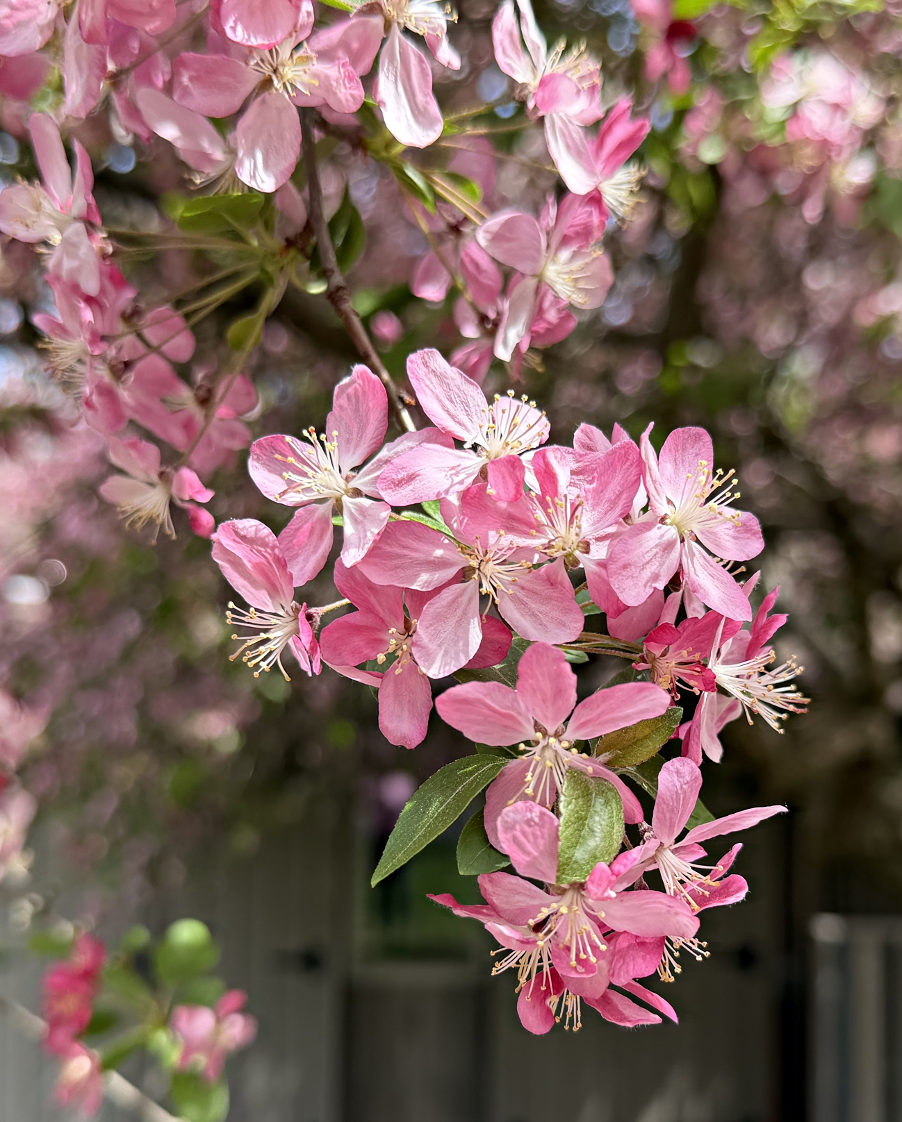 It’s not often we see near-90 degree temperatures in April! Love or hate the warmth, it seems it was an ideal environment for blooms around the Arboretum. One such example is the flowering crabapple pictured below with its lovely pink petals. The bees love it too so it may be best to enjoy from a distance, when Out and About.