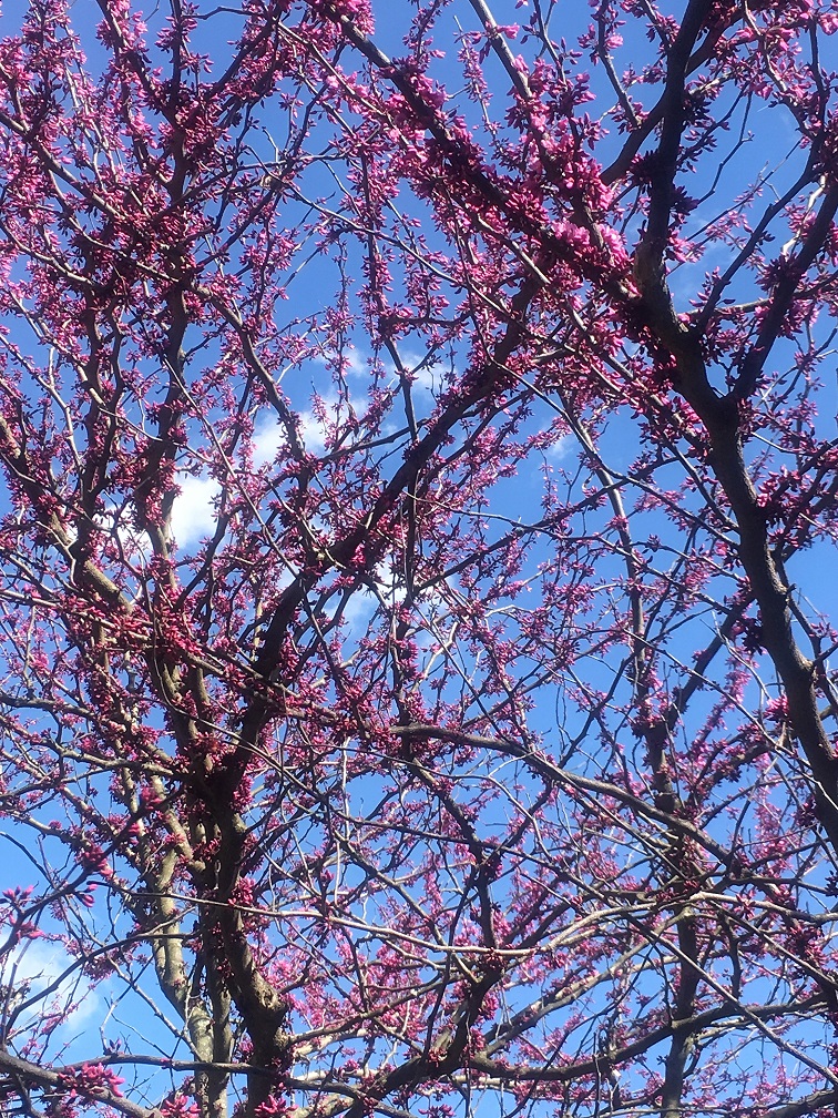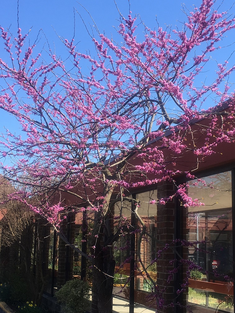 Cercis canadensis, otherwise known as Redbud trees, add an incredible amount of color to the Arboretum at this time of the year. This native tree is a member of the bean family and is an attractive ornamental tree. The mauve and pink blossoms last for about two to three weeks, with heart shaped leaves to follow. You will find a number of these trees on both Campuses to enjoy, but they are most easily found in the Medford Campus Community Building parking lot, as well as by the entrance to the Lumberton Campus Community Center.