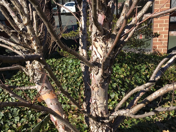 The end of the winter and early spring are wonderful times to appreciate the bark of our specimen trees. Behind the beauty of the leaves and the blooms, the bark is a constant garden feature to enjoy.