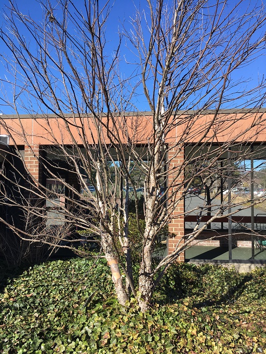 The primary function of bark is to protect against weather elements, and defend against insects. Bark also offers distinct looks and texture as trees mature. Of particular note is the bark on the River Birch trees that you find at the entrance to the Lumberton Campus, and the River Birch that is featured in the Atrium as you enter the Medford Campus Community Building. The Chinese Seven-Sun Tree in Court 20 is another tree with a unique bark to enjoy.