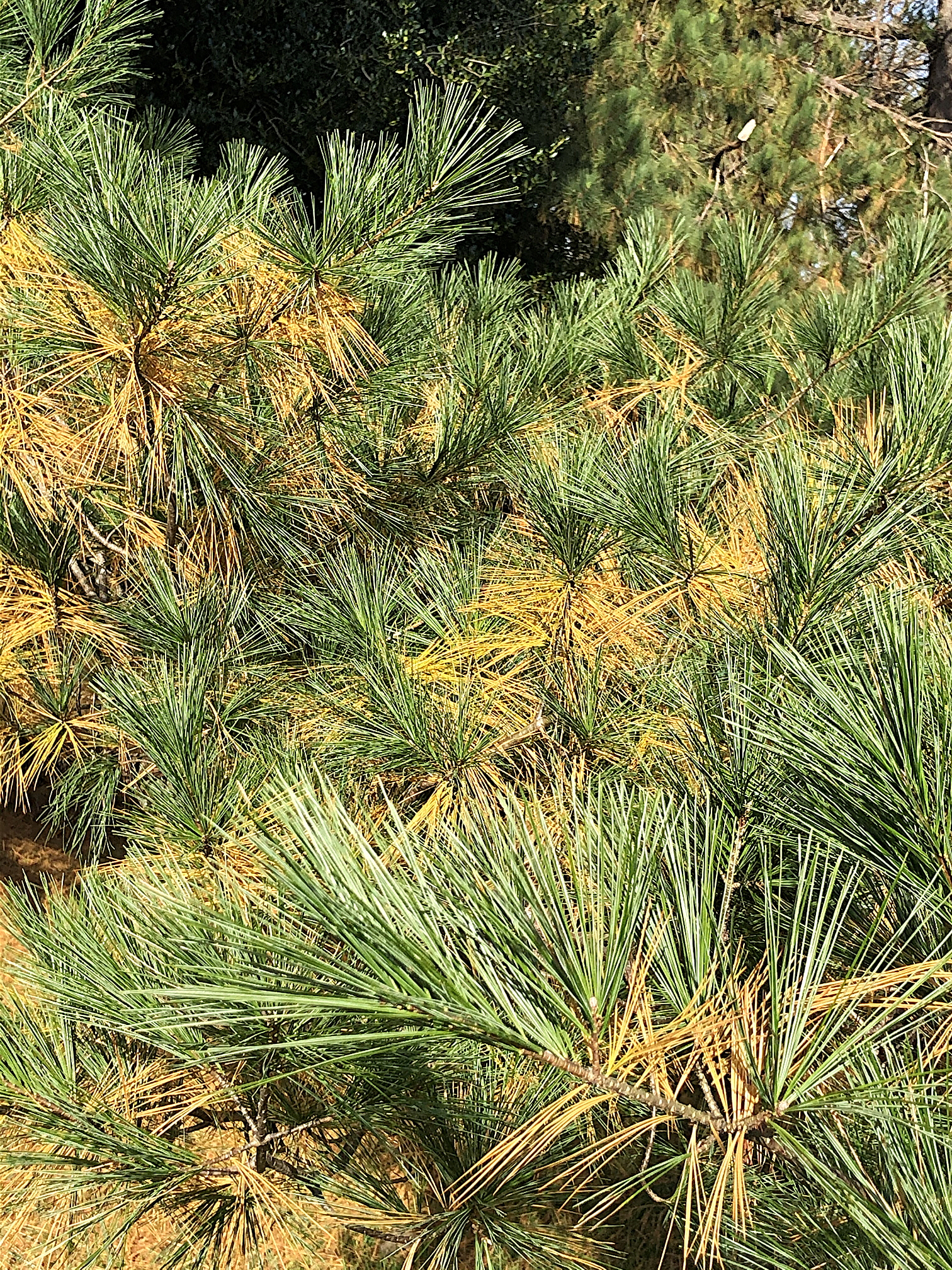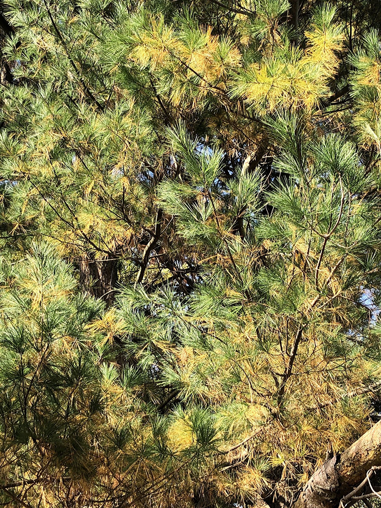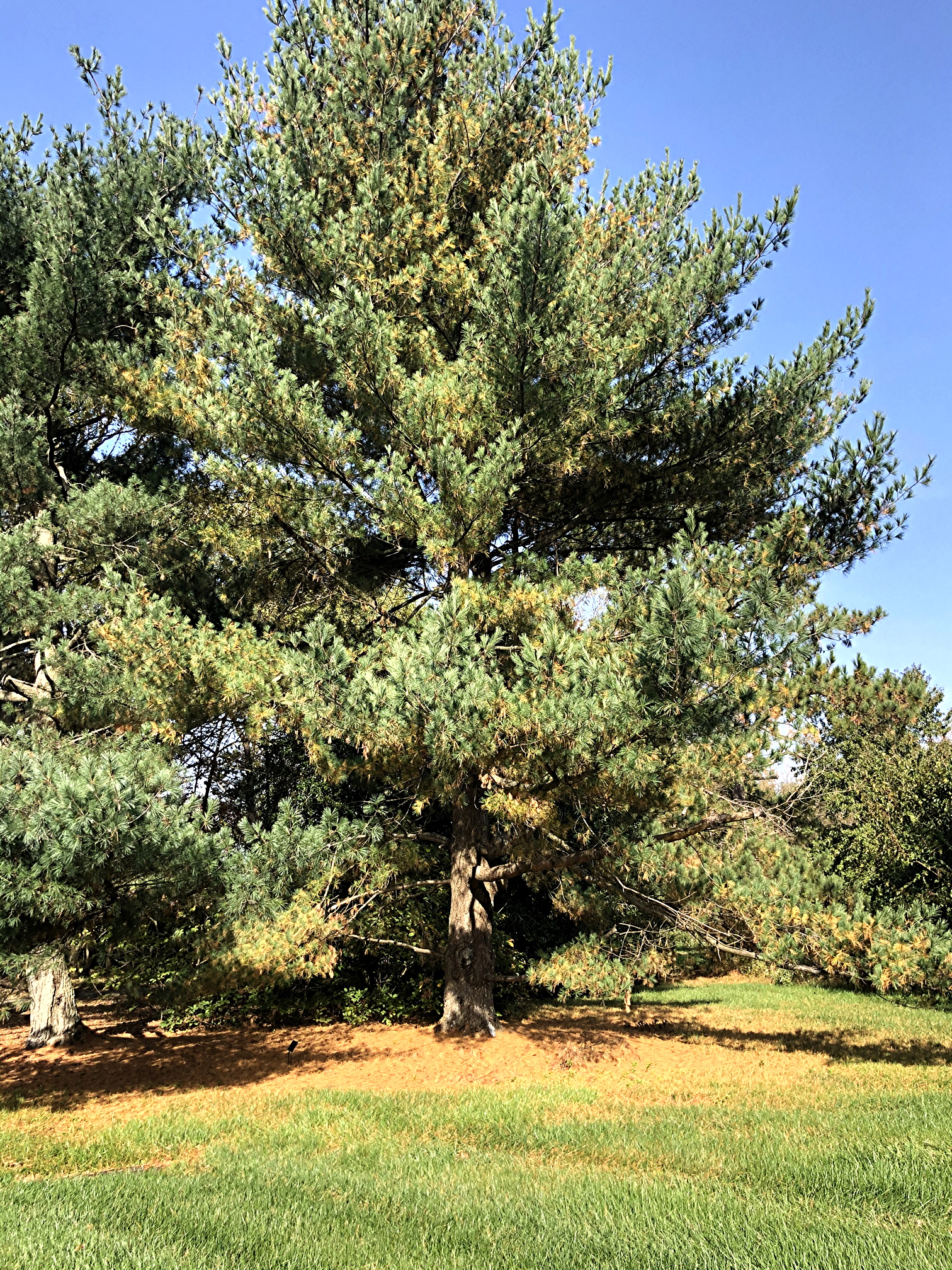 Don’t panic! Even though we call them “evergreens,” conifers such as pine, arborvitae, spruce, and cypress shed their old needles at this time of the year, with a show of yellowing or browning that at first sight can be of concern. But in fact, inner-needle drop is a normal part of the life cycle, with the rate of drop varying by species. The Eastern White Pines seem to be the most dramatic in their needle drop, giving us a new carpet of pine needle mulch around the trees.